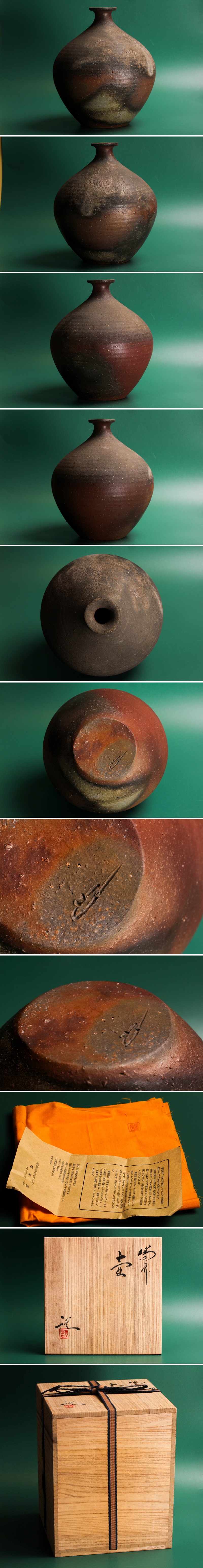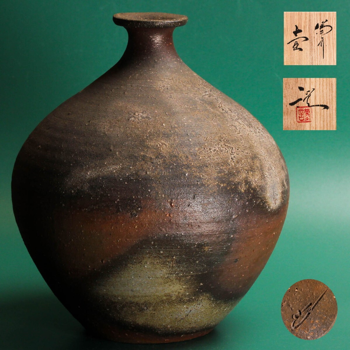 - 藤原謹 楽山窯 備前壷 共箱 共布 栞 本物保証