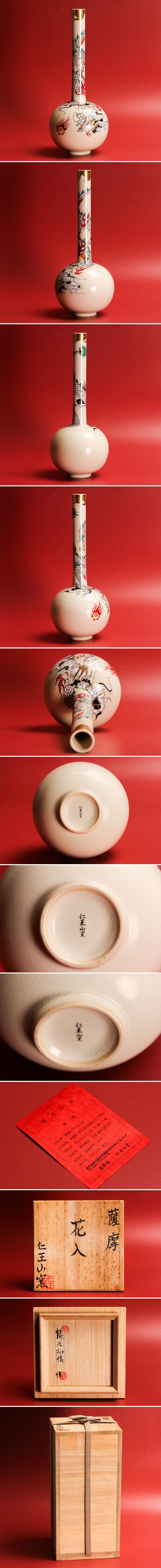 - 福元弘信 仁王山窯 薩摩花入 高さ26cm 共箱 栞 本物保証