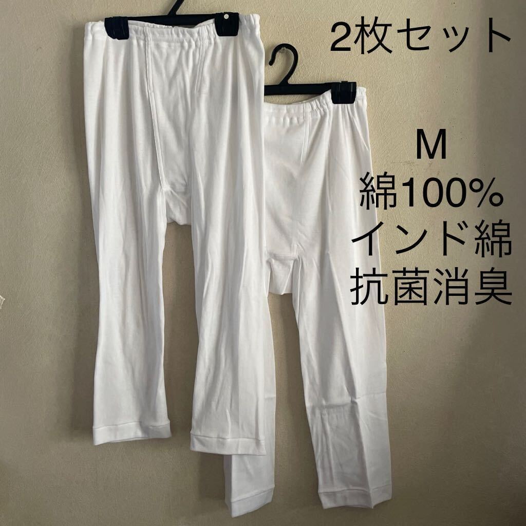 - 2枚組 M 綿100% フライス編み 前開き 半ズボン下 ロングパンツ ロンパン ステテコ 男性 紳士 下着 メンズ 肌着 抗菌消臭 インド綿