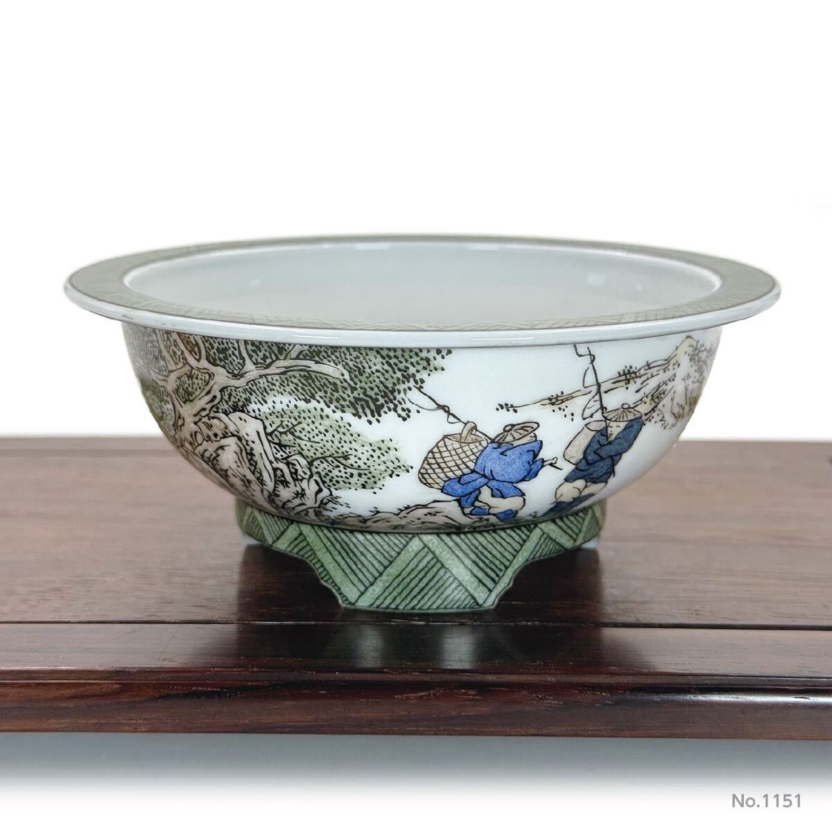 - 【谷樂方山】色絵山水人物図丸鉢 盆栽/鉢/植木鉢