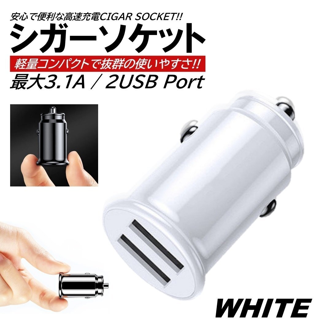 - ホワイト 超小型 車載シガーソケット スマホ 充電器 12V/24V 車用 充電器 急速充電 USB 2ポート 5V 3.1A スマートフォン 各種対応 充電速度
