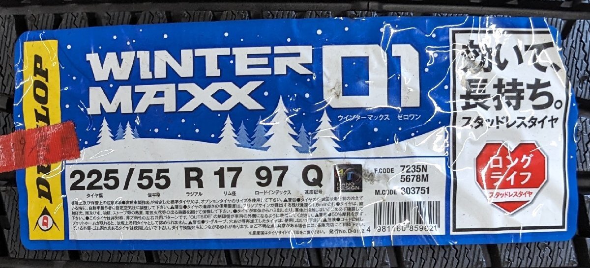 > 『大田原店』売切り☆新品スタッドレスのみ 1本☆DUNLOP WINTER MAXX01 WM01 ダンロップ ウィンターマックス☆225/55R17☆19年製☆3本迄可