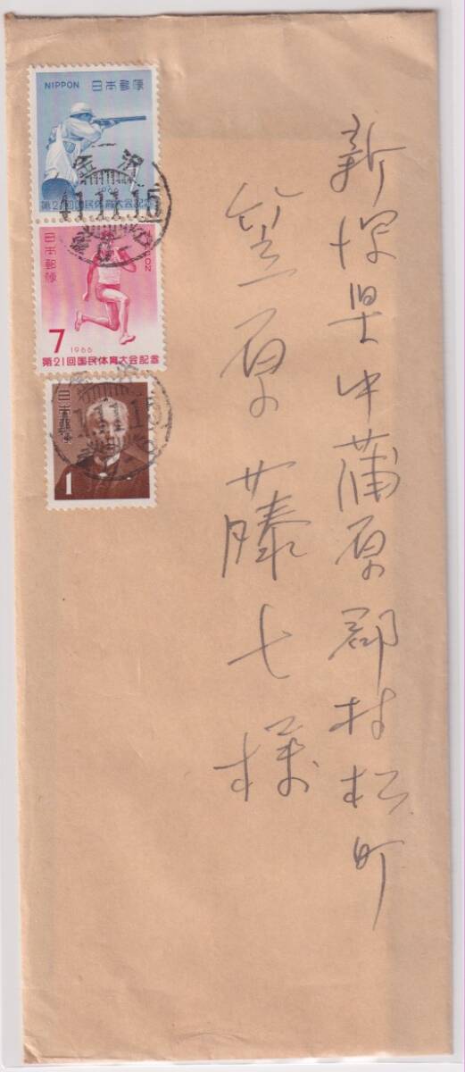 - 第21回国体7円2種.前島1円貼書状 ク/金沢/41.11.15/後0-6