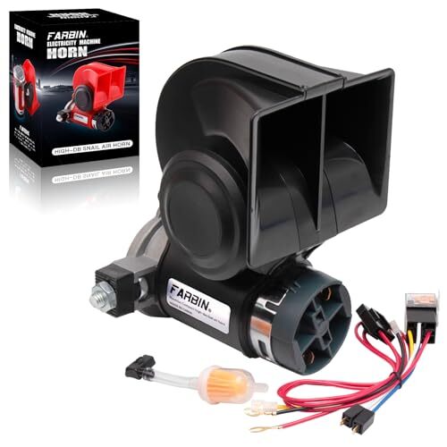 - ブラック空気ホーン 24V FARBIN 24Vコンパクト エアホーン スーパー大声で 電動エアホーン リレーとハーネスを含む 防