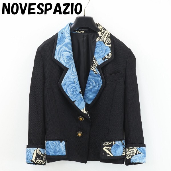 > 【KA660】美品◆NOVESPAZIO ノーベスパジオ バラ柄切替 ジャケット 黒 ブラック M