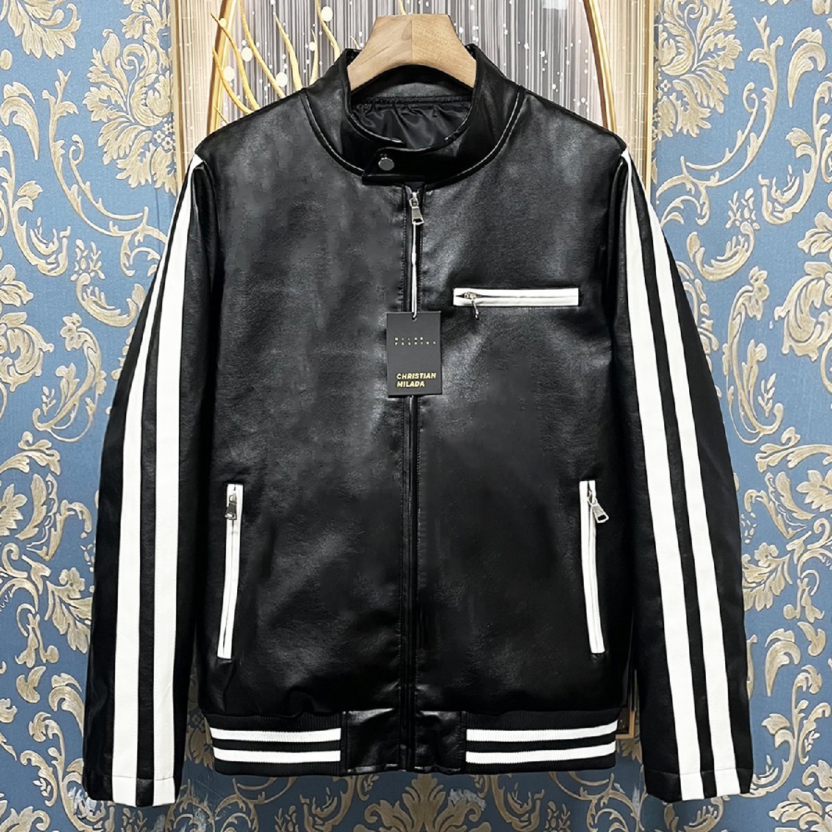- 定価12万★christian milada・ミラノ発・レザージャケット★防水 滑らか カッコイイ ライダース PUレザー 革ジャン アウター バイク用 M/46