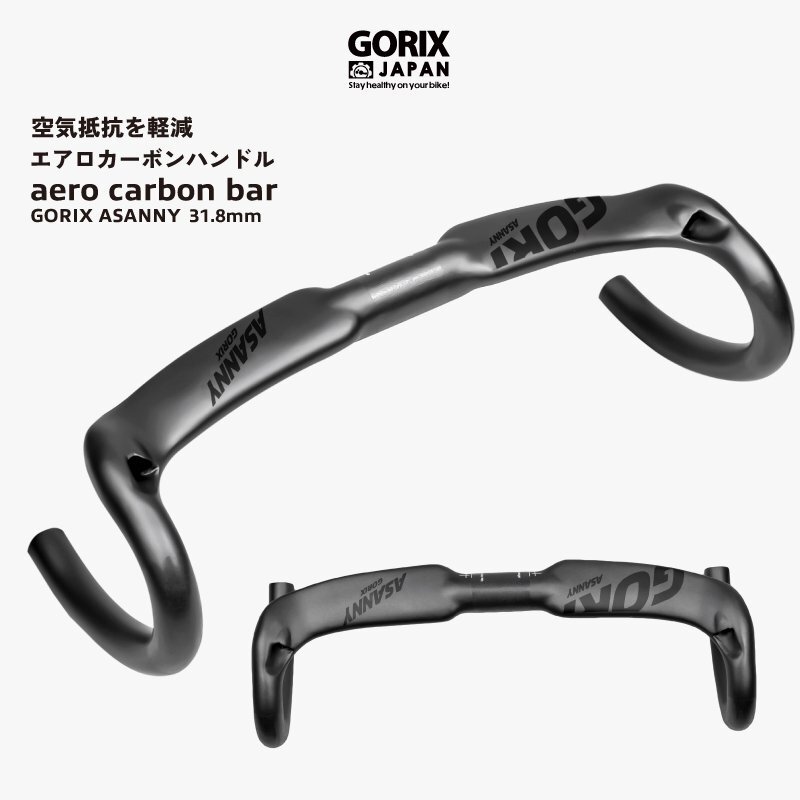 GORIX ゴリックス エアロハンドル カーボン 自転車 ドロップハンドル 軽量 カーボンエアロハンドル ロードバイク(ASANNY)炭素繊維 380mm