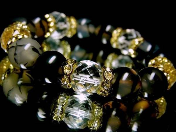 - カット水晶黒龍紋ドラゴンアゲート12ミリ