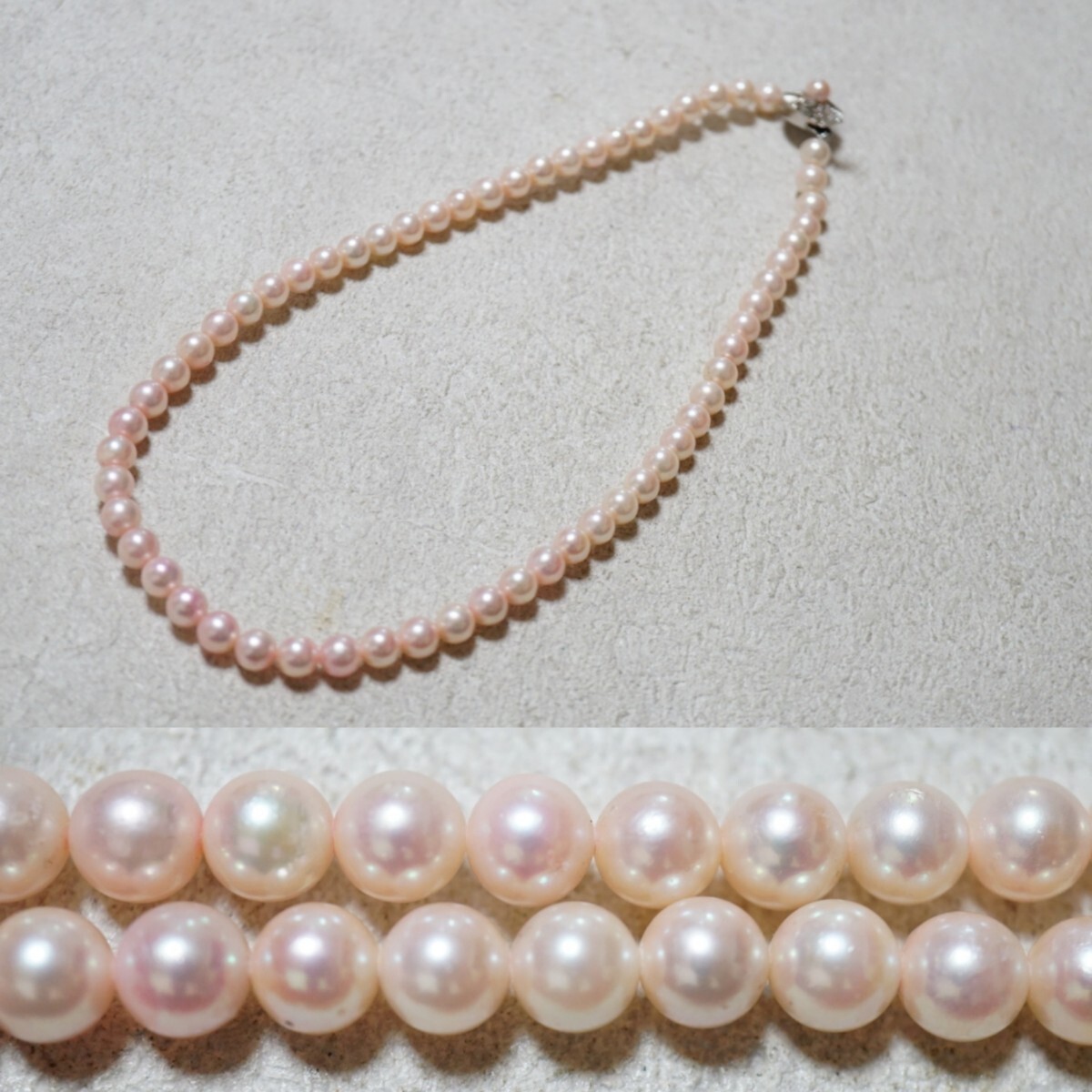 - 797 アコヤ真珠 6.5㎜ 本真珠 パール ネックレス ヴィンテージ アクセサリー SILVER刻印 ペンダント 冠婚葬祭 あこや 装飾品