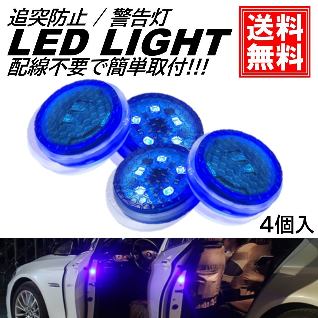 - 青色 配線不要 LED警告灯 ブルー ドアストライカー 点滅灯 追突防止 ドア開閉作動 自動センサー 電池式 マグネット式 4個入
