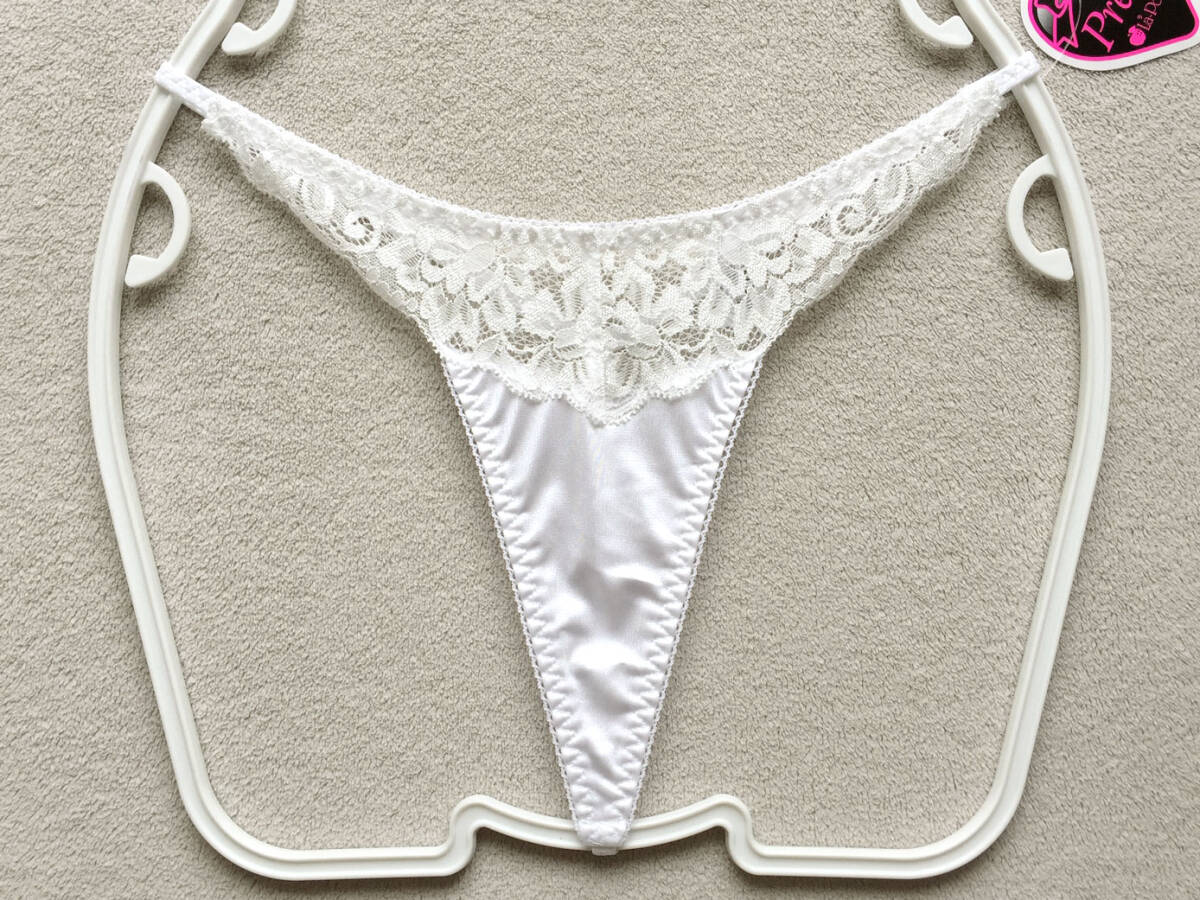 - 【ラ・ポーム/La-Pomme】ハイレグVフロント★つやつや光沢フェリカ&フラワーレース★GストリングTバック/白♪新品/日本製