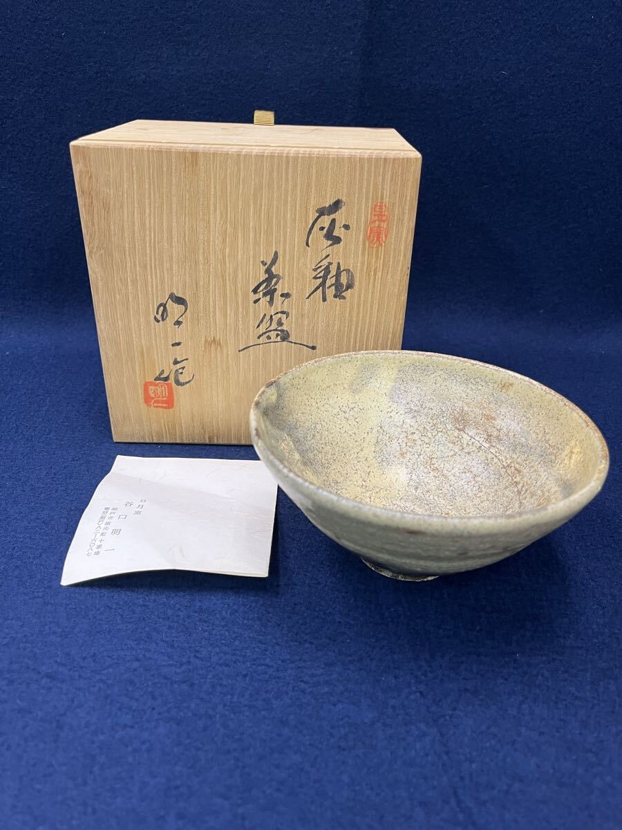 - abnov112705 日月窯 谷口明一 造 灰釉 茶碗 茶道具