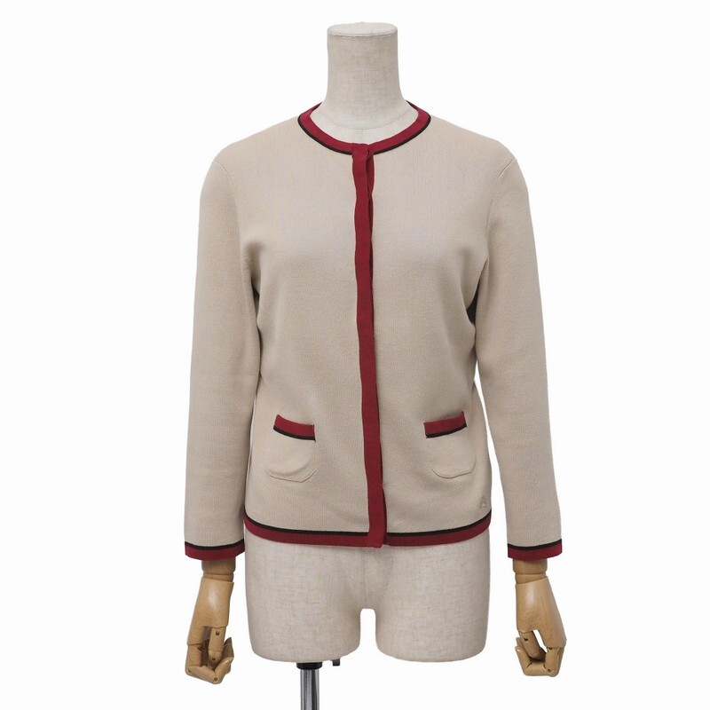- TJ7041★BURBERRY LONDON バーバリー コットン100% パイピング ニットカーディガン ライトブラウン×バーガンディ サイズ1 七分袖