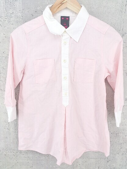- ◇ X-girl エックスガール 七分袖 シャツ 1 ピンク ホワイト *