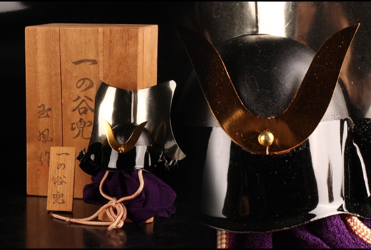 - [URA]上原玉鳳 作「一の谷兜」/重さ96g/共箱/10-11-161 (検索)骨董/ミニ兜/鎧/戦国武将/織田信長/豊臣秀吉/徳川家康/鳥兜