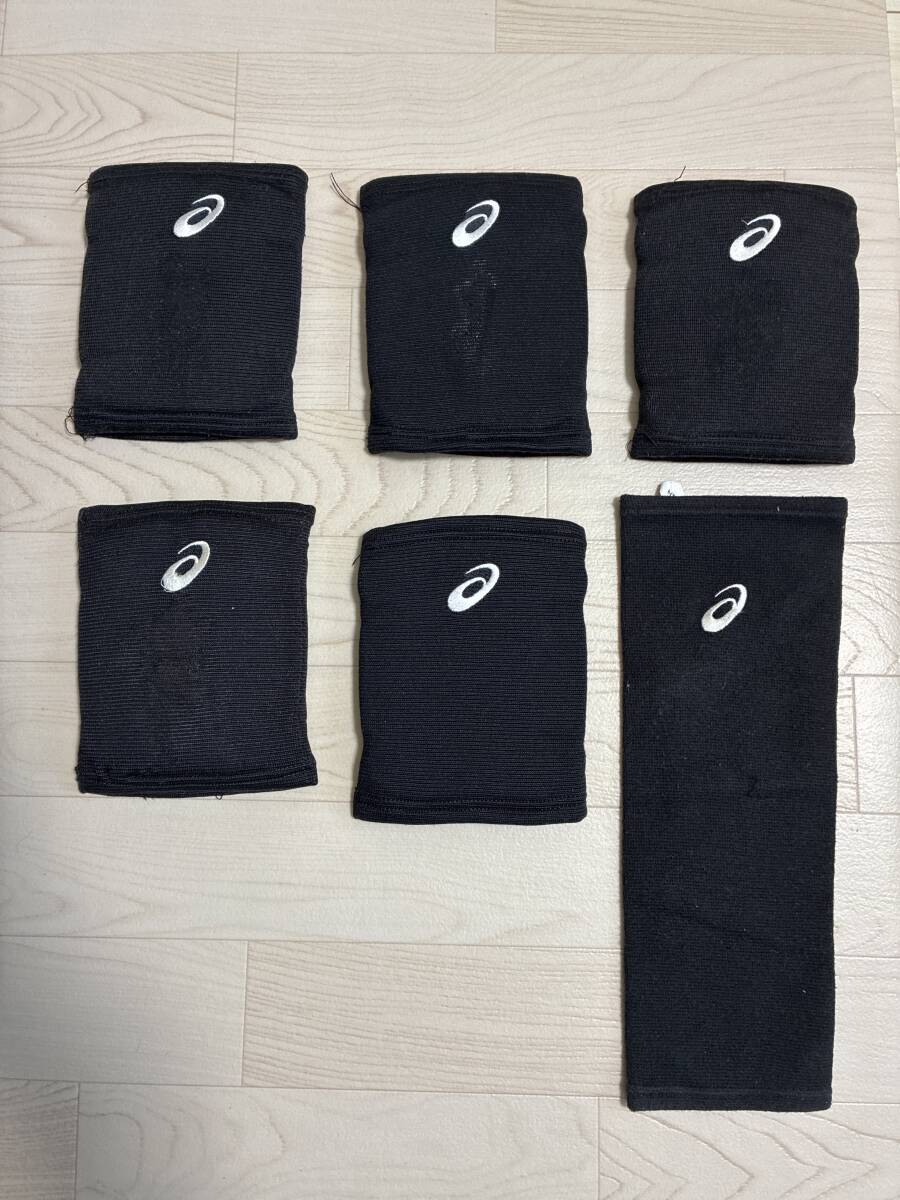 - 中古アシックス Mサイズ 膝サポーター5個 足のサポーター1個 バレーボールで使用 使用感あり 1つ名前あり
