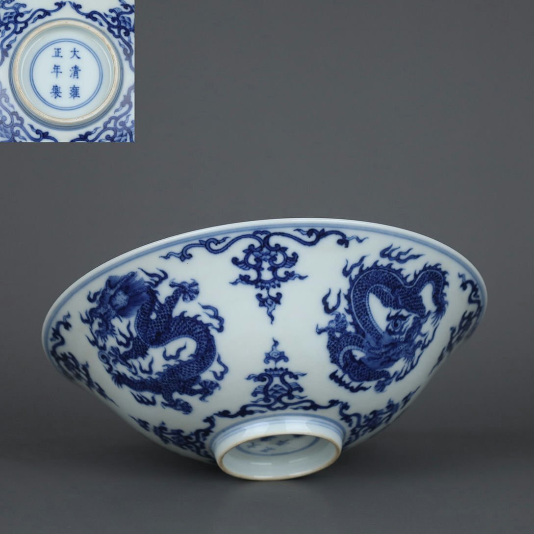 - ▼渡鶴羽▼A0735清雍正 青花団龍紋斗笠碗・古陶磁器 ・珍品旧蔵・古賞物・時代物