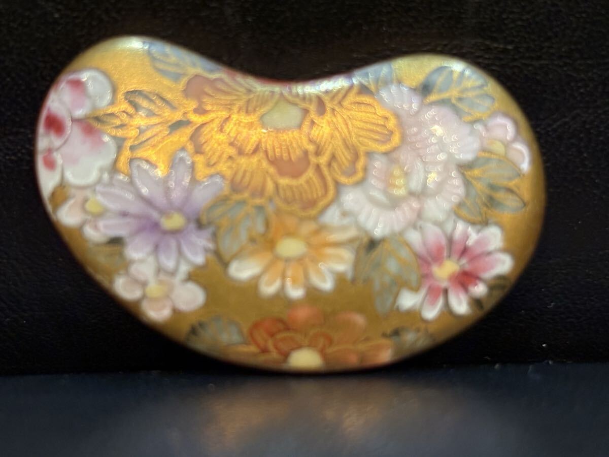 - 希少 格安 高級 陶器製 九谷焼 帯留め 金彩 金色地花柄 保管品 優雅 エレガント オシャレ 和装小物 着物 格式