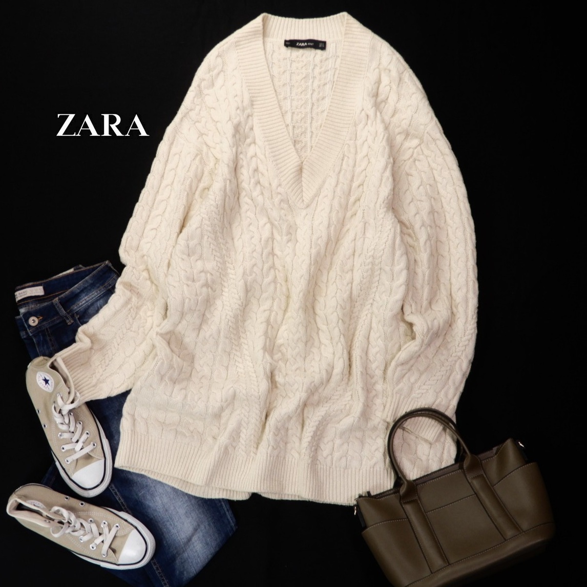 - ザラ ZARA KNIT 大人可愛い☆Vネック ゆったり ワイド ケーブル ニット プルオーバー M