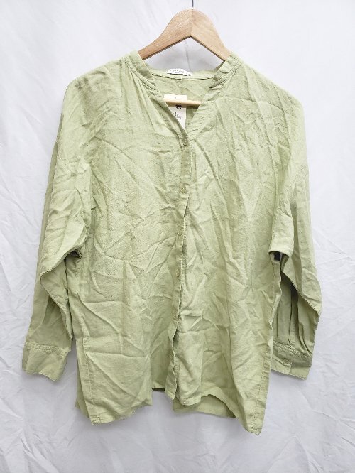 > ◇ ⊂ Φ ◎ ●美品● earth music&ecology タグ付き 長袖 シャツ ブラウス サイズF ライムグリーン系 レディース P