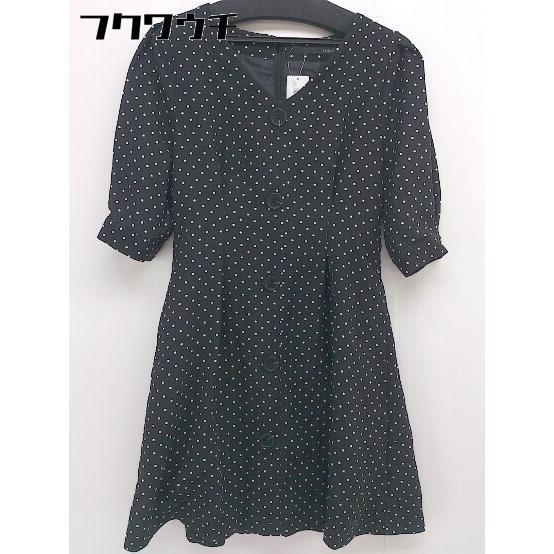 > ◇ Heather ヘザー座 水玉 装飾 ボタン 五分袖 ミニ ワンピース サイズ F ブラック ホワイト レディース