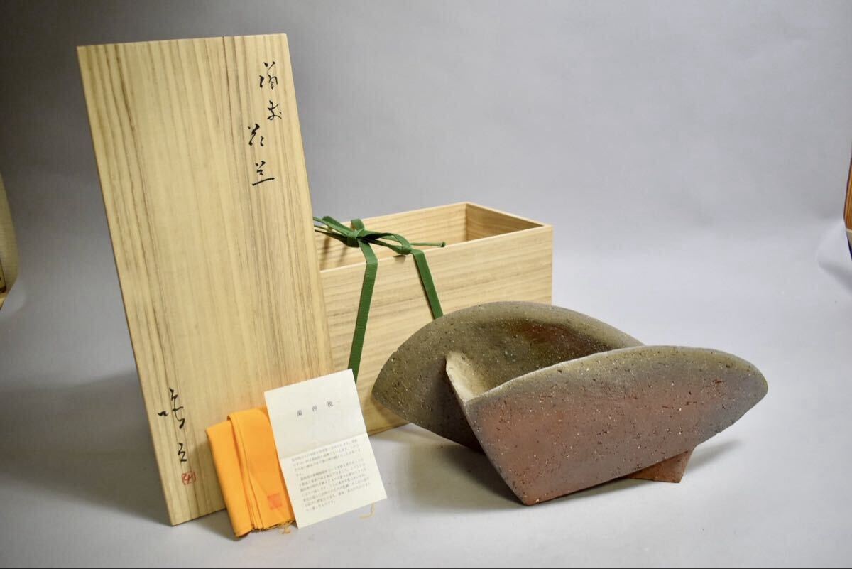> 【英】A1328 脇本博之 備前花器 共箱 D51㎝ 日本美術 備前焼 花生 骨董品 美術品 古美術 ys