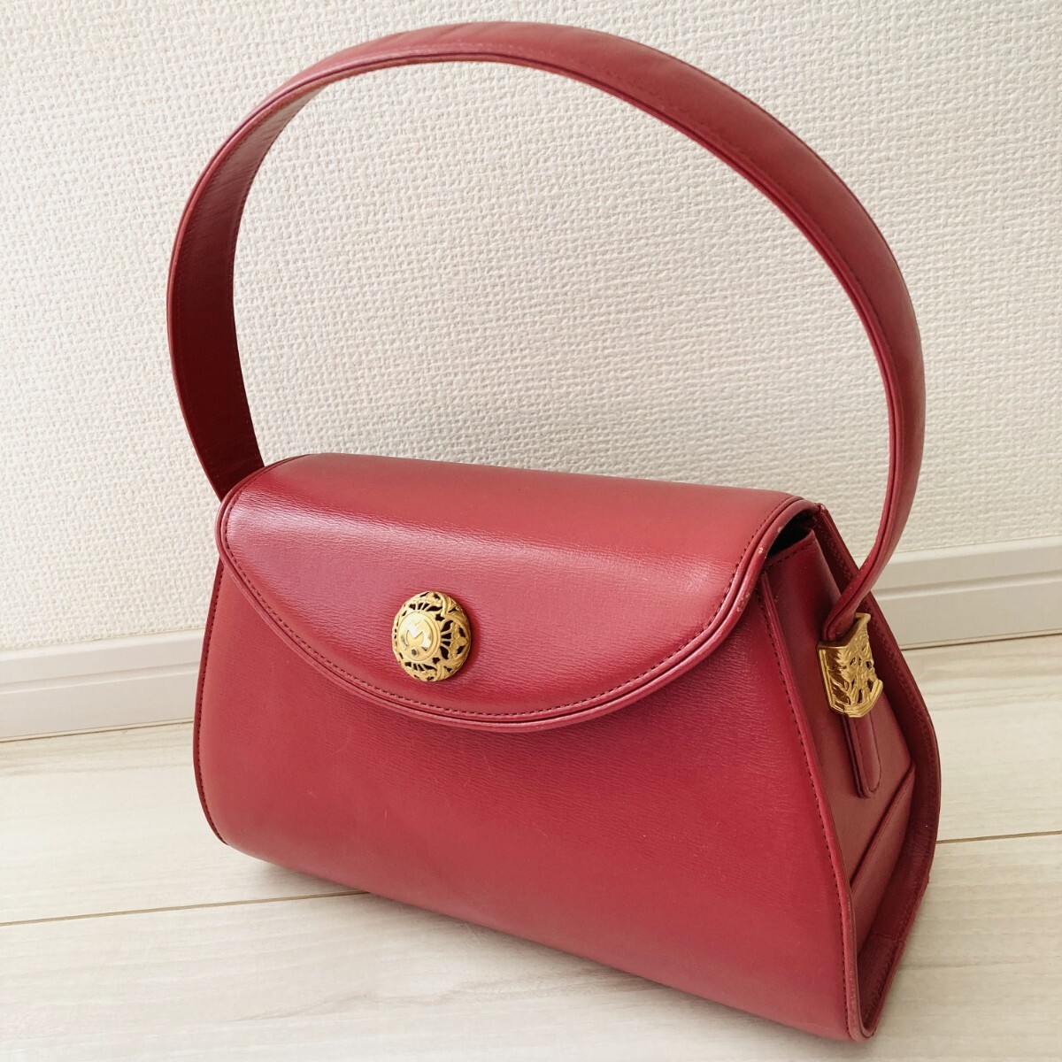 - ★レアカラー★ milaschon ミラショーン ハンドバッグ ゴールド金具 ピンク レッド 赤 朱色 ラズベリー 牛革 レザー GD金具
