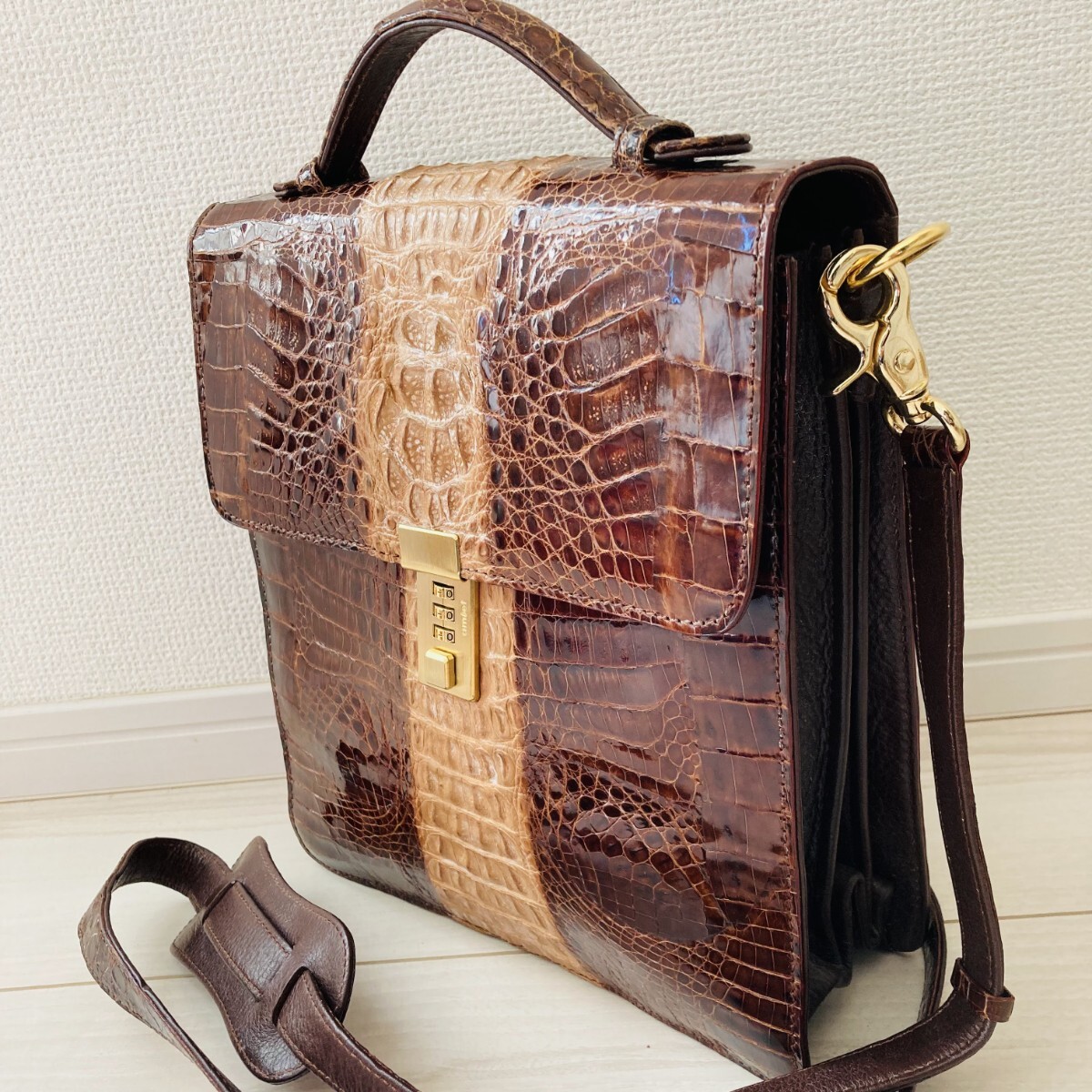 - ★即決★ クロコ クロコダイル カイマン 2way セカンドバッグ ショルダーバッグ ブラウン BR 茶色 シャイニー クラウン 鰐革 ワニ