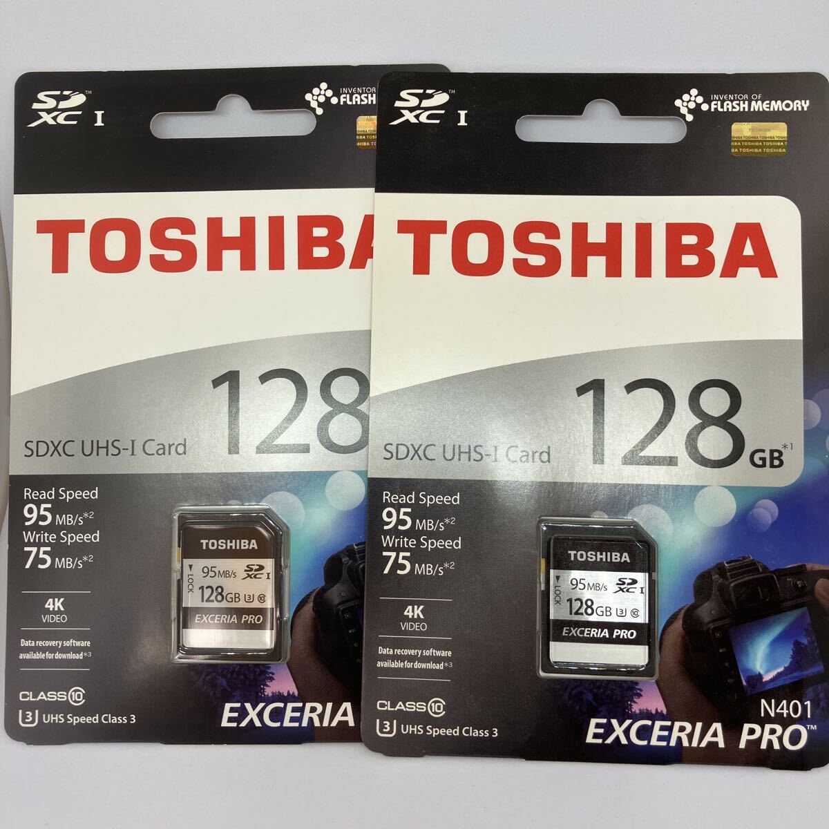 - 【新品未開封×2枚セット】TOSHIBA EXCERIA PRO N401 SDXC 128GB UHS-I 95MB/s 4K対応 日本製 海外向けモデル 2019年 東芝