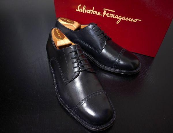 > 使用僅か フェラガモ 7EE Ferragamo 最上位ライン トラメッザ ストレートチップ 【純正シューツリー付属】1126