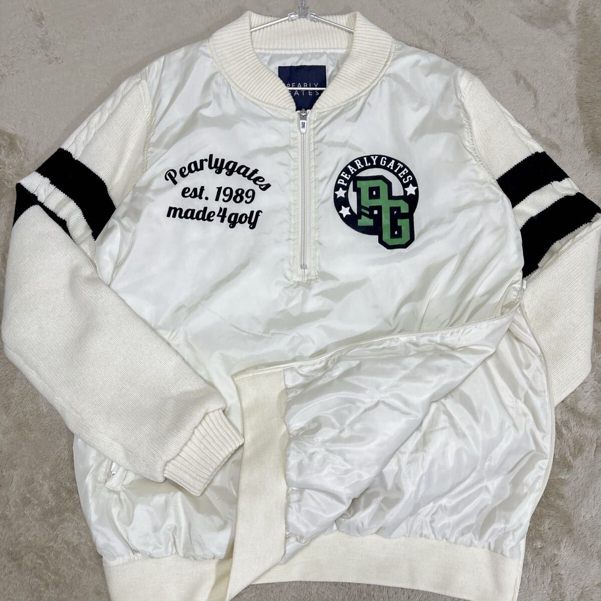 > 未使用級!L相当!パーリーゲイツ PEARLY GATES キルティング 中綿 ケーブルニット切替 現行 スニード ナイロンロゴ ゴルフウェア メンズ 5