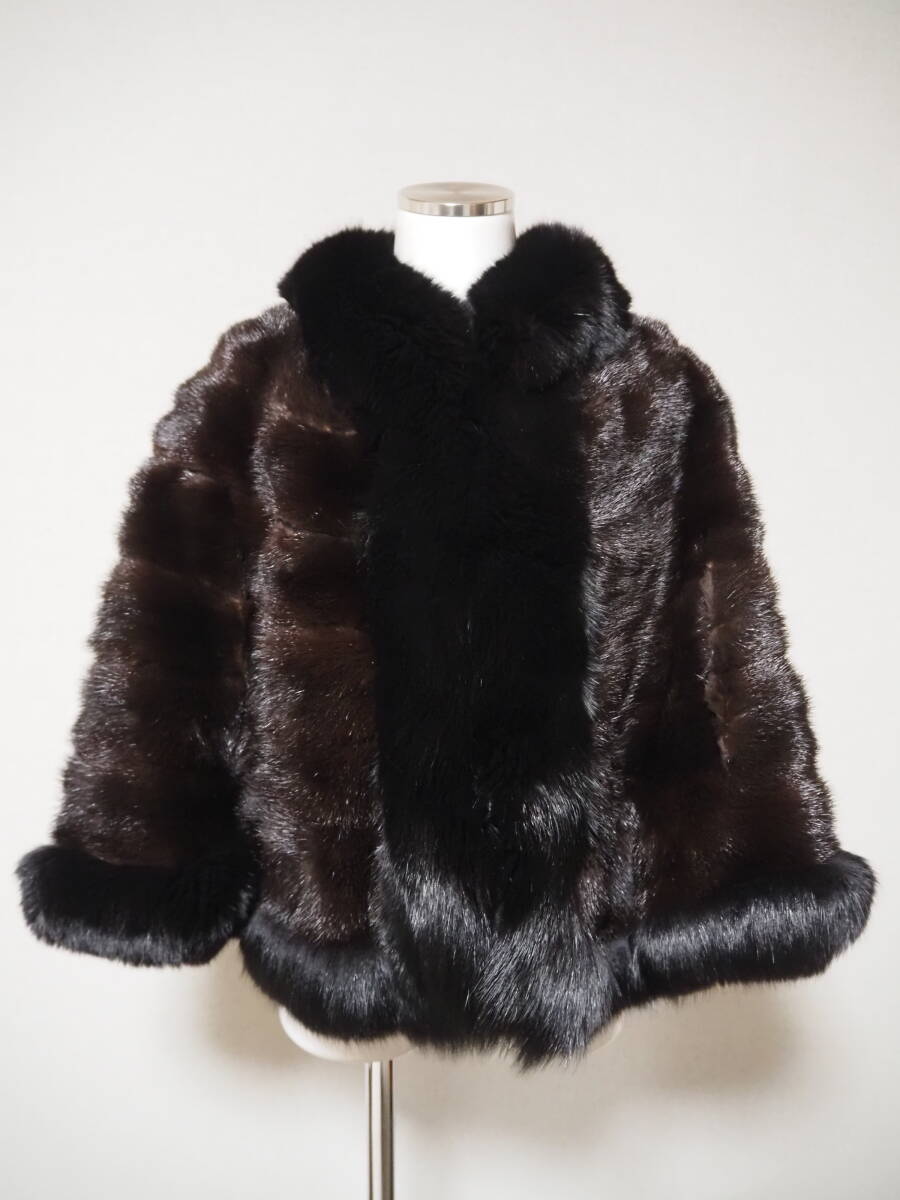 - ■ダークミンク×染めブルーフォックス■ケープ■着丈57㎝■SAGAシルバー■