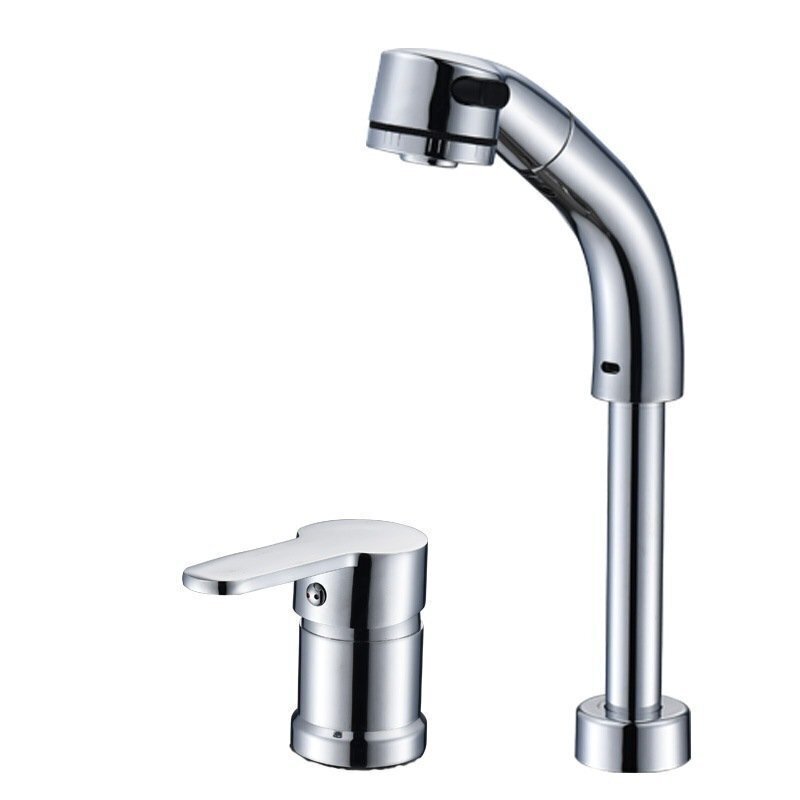 - 実用 洗面台蛇口水栓2つの水流モード360°回転吐水口昇降ツーホール式洗髪用混合栓2穴台付ホース引き出し式取り付けホース付き