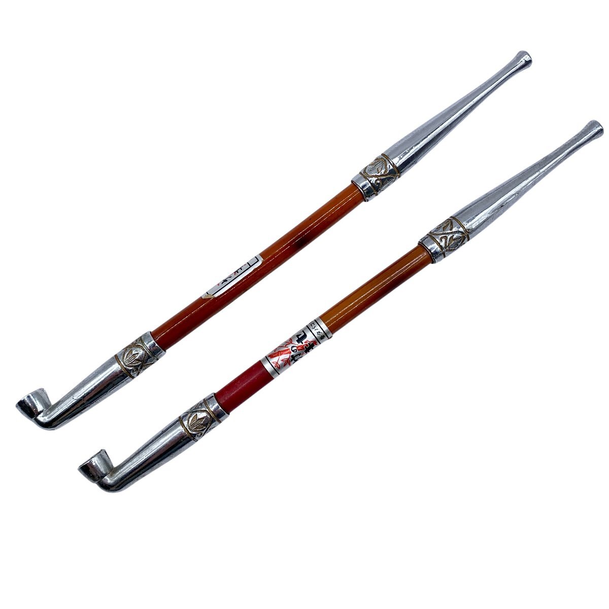 - 煙管 キセル 喫煙具 朱竹印 竹のキセル 巻たばこ兼用 ヴィンテージ 昭和レトロ 2点 おまとめ 中古品 コンパクトサイズ 蘇や(BBY2225)