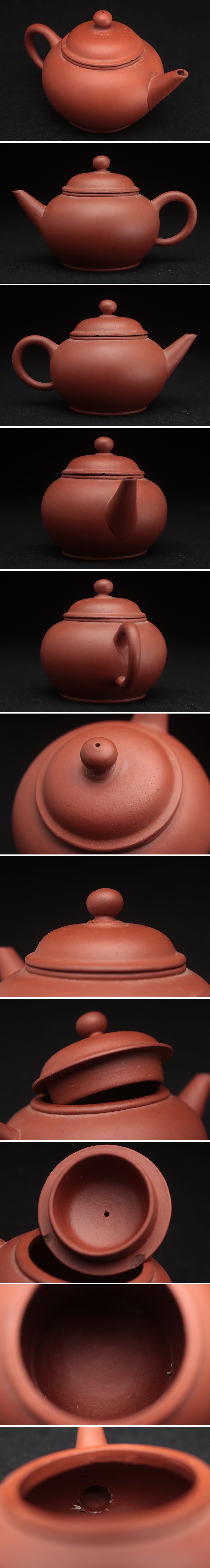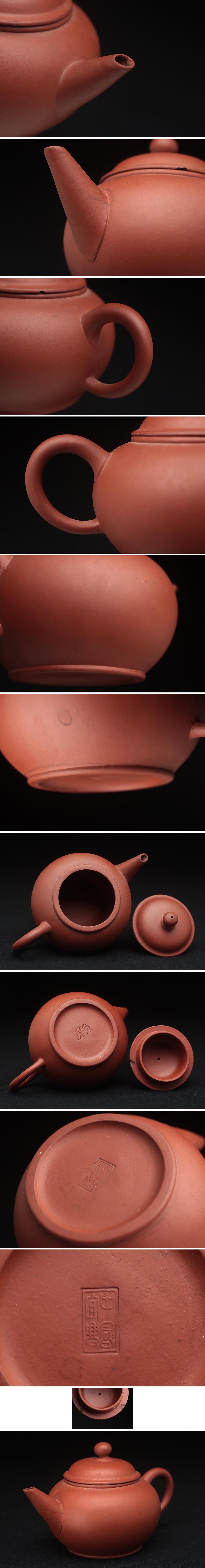 - FD501 中国宜興 唐物 朱泥 砲口 急須 長幅11.3cm・紫砂単孔口茶壷 茶具 煎茶道具 中国古陶磁 中国古玩 古美術品