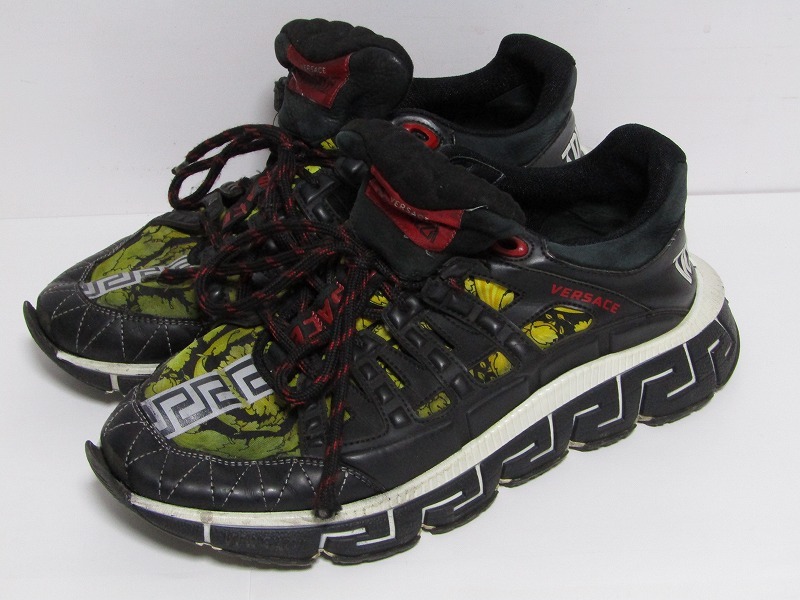> VERSACE ヴェルサーチ トライグレカ サイズ43 ローカットスニーカーシューズ ブラック/イエロー 現状渡し kl25-5094[BNI]