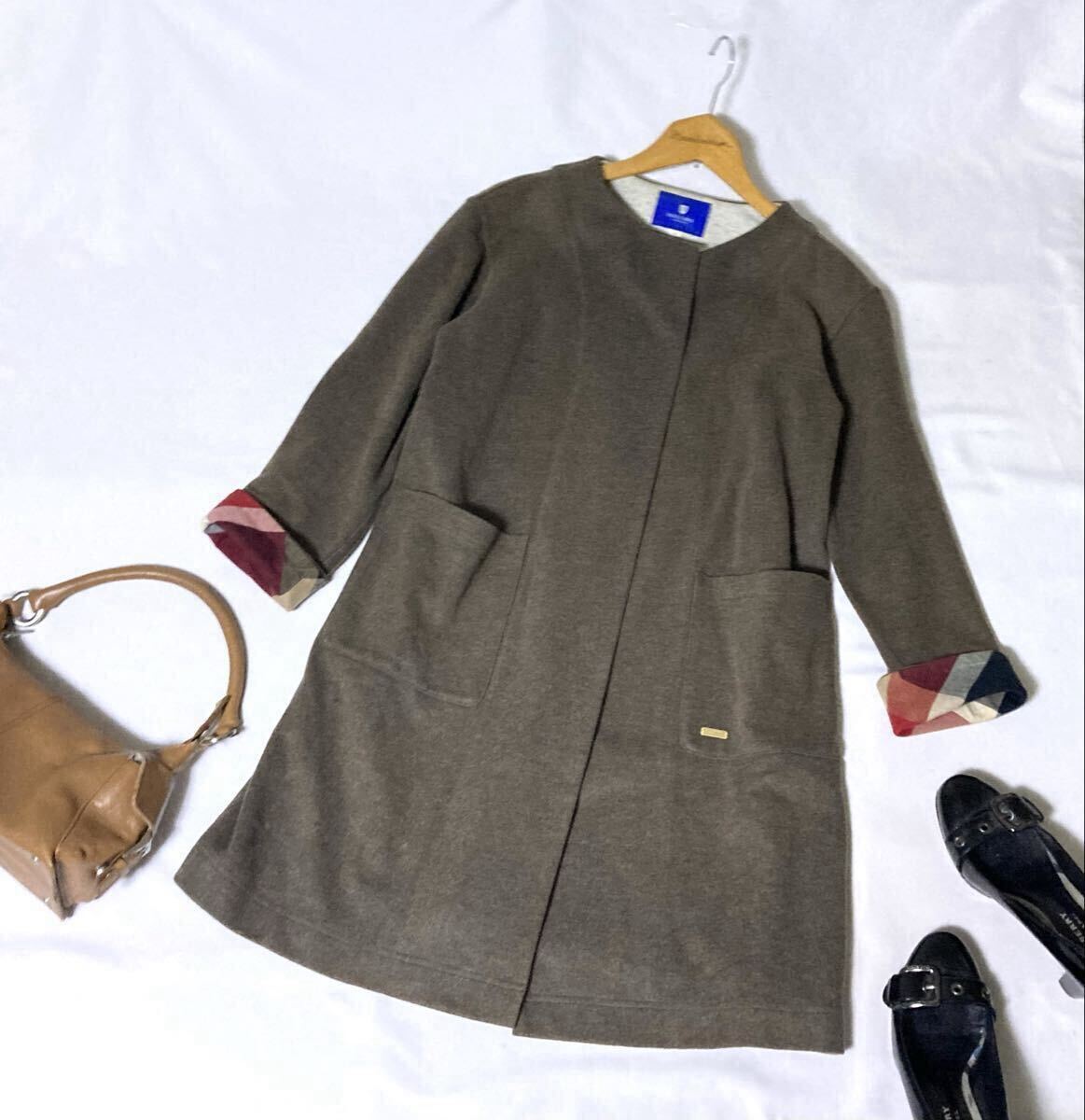 - ブルーレーベルクレストブリッジ 折り返しチェックのお袖が可愛い着流しデザインのコート 36 送料230円♪