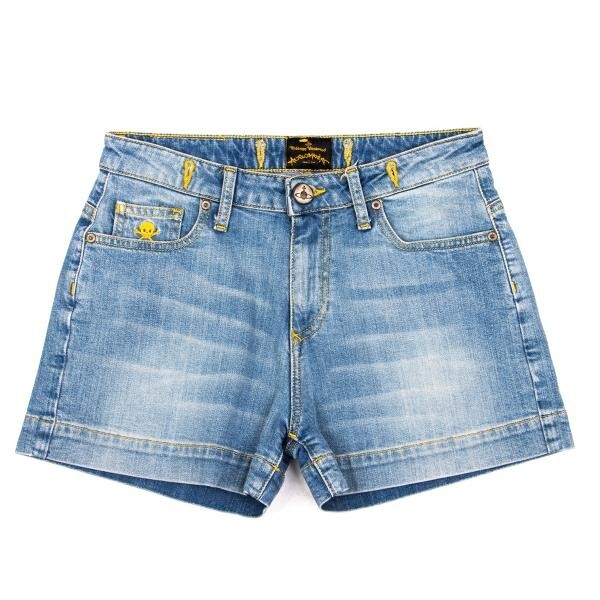 > ヴィヴィアンウエストウッド アングロマニア スカル刺繍裏スクイグルデニムショートパンツ インディゴ25