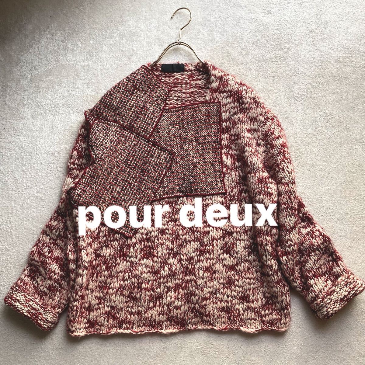 - 3点送料無料☆ pour deux プルドゥ パッチワーク ニット ざっくり感 セーター 厚手