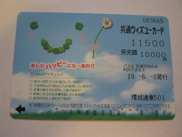 - 使用済★ウィズユーカード★クローバー★札幌市交通局