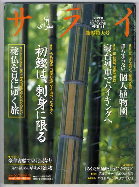 書名/記事: 01.6.7 サライ/初鰹,寝台列車でハイキングへ,秘仏を見にゆく旅,個人植物園,麗しき「黄金期の活動冩眞」,草もの盆栽,ミニトマトを育てる,鮎並のみぞれ煮...