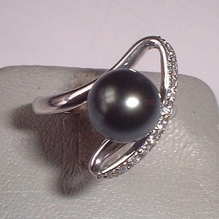 - 送料無料 pt900ブラックパール8.5mm・ダイヤリング used 質屋出品