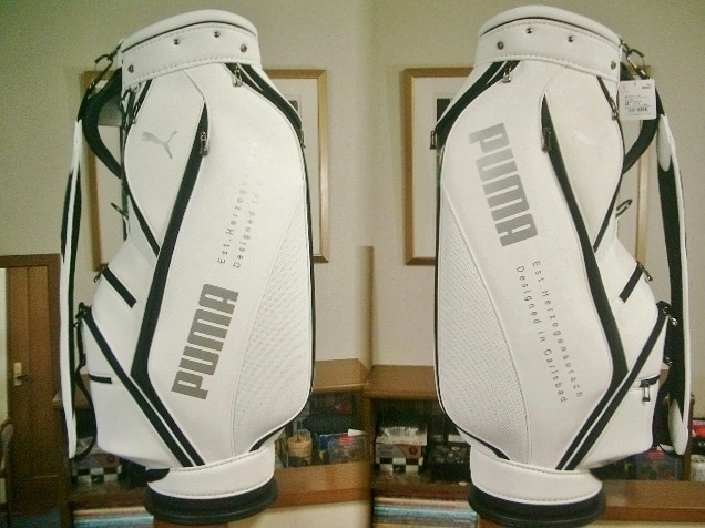 - 未使用 PUMA プーマ スポーツ・モデル プリント柄 合皮レザー ホワイト白シルバー ゴルフバッグ