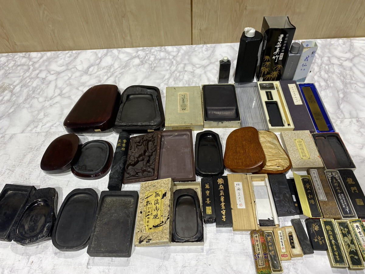 - 【42-87】書道具 習字 まとめ売り 硯 文鎮 墨 古墨 中国墨 使いかけ 折れあり 古美術 年代物 ヴィンテージ 長期保管品 現状品