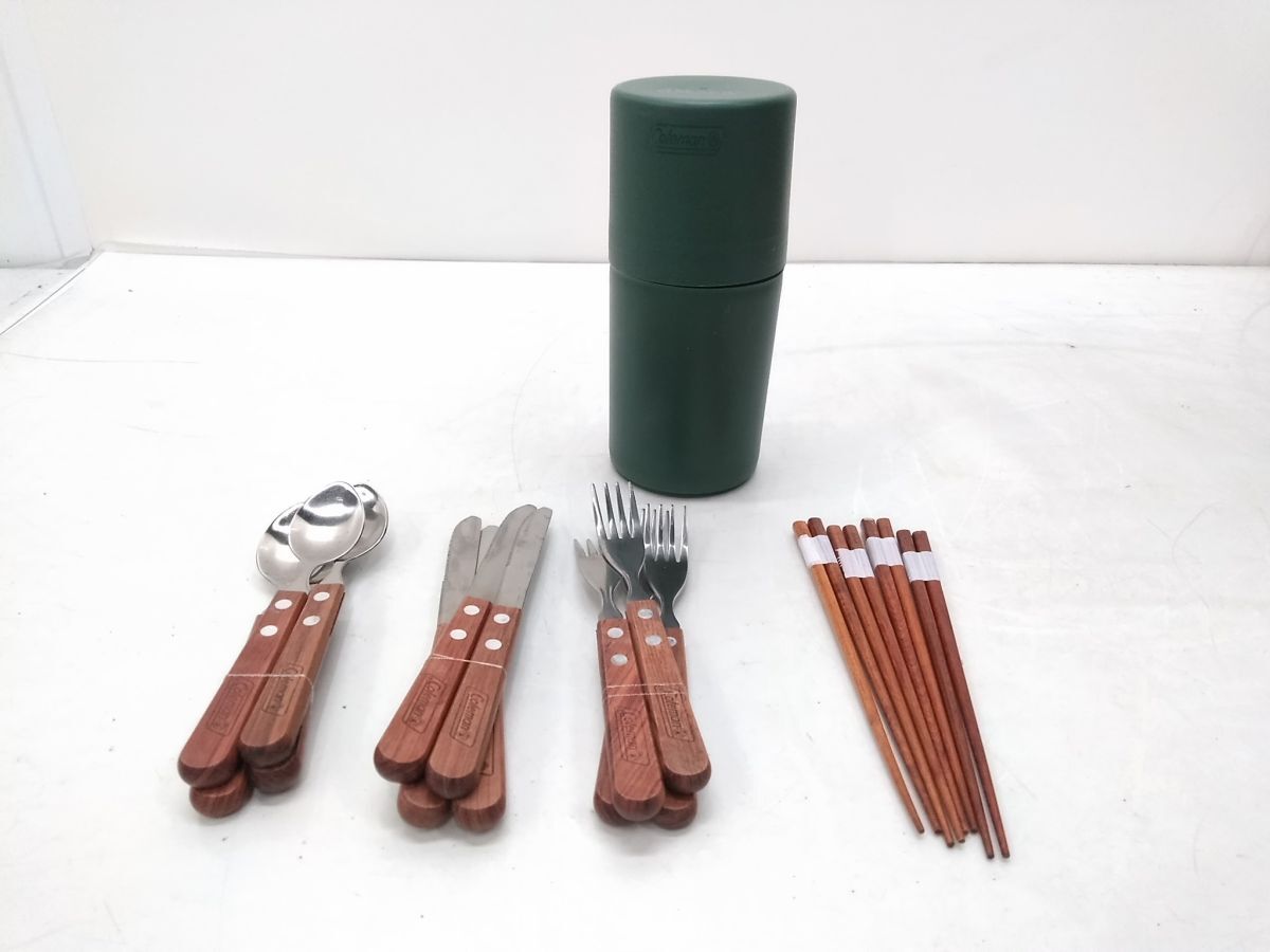 > ●Coleman コールマン ステンレス カトラリーセットファミリー 4人分 ケース付 アウトドア用品 0316-302B @60●