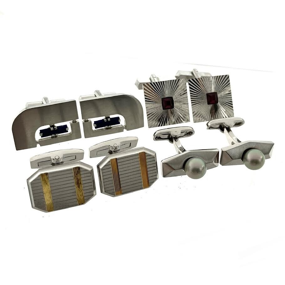 - 仙1【4点】SILVER シルバー 刻印 カフス カフリンクス まとめ 約50g メンズアクセ 昭和レトロ パール系 (3)