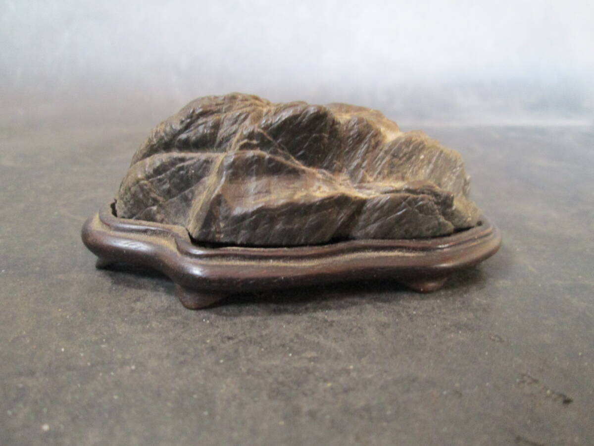 - 【夕霧】紀州銘石古谷石唐木台作者銘あり
