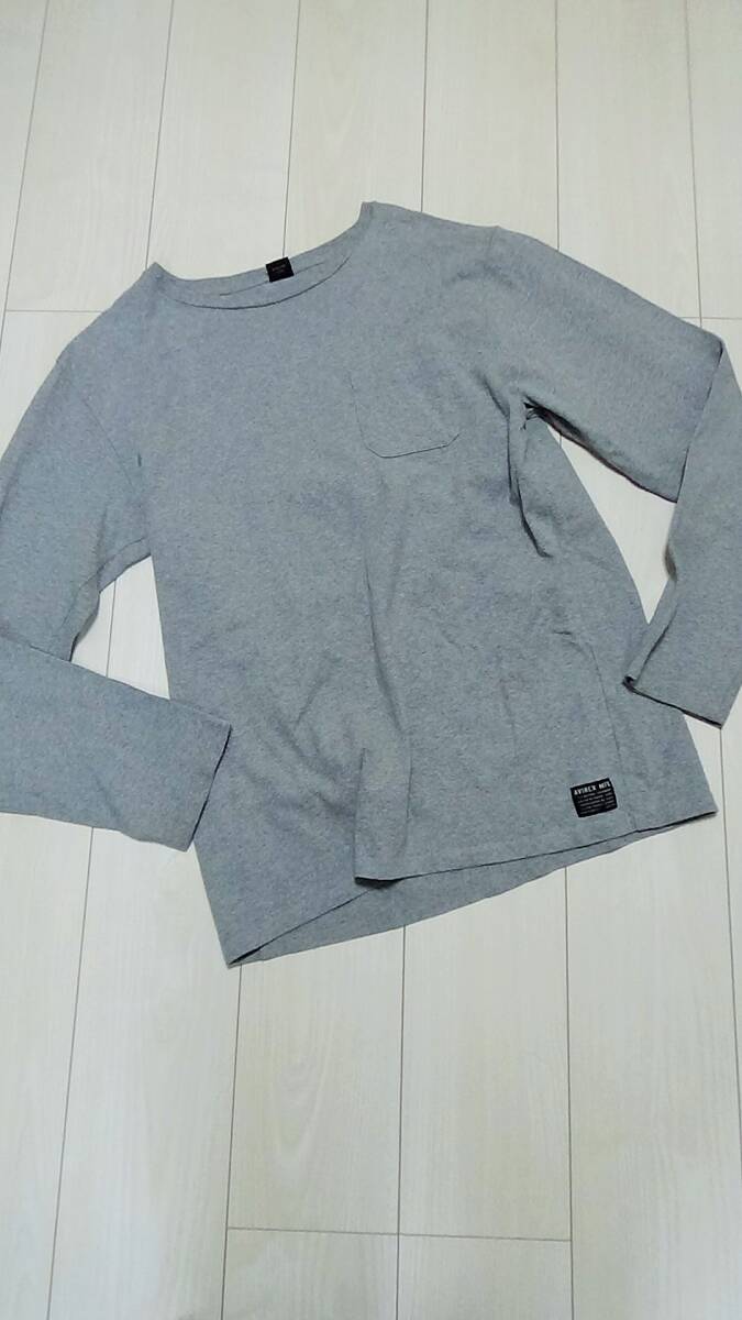 > AVIREX メンズ XL ★ ロゴ ワッペン リブ 長袖 Tシャツ シャツ トップス グレー LL
