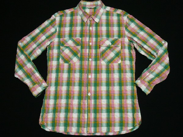 - 美品LEVISリーバイス[RedTab]長袖ロールアップシャツXLピンクチェック\7150