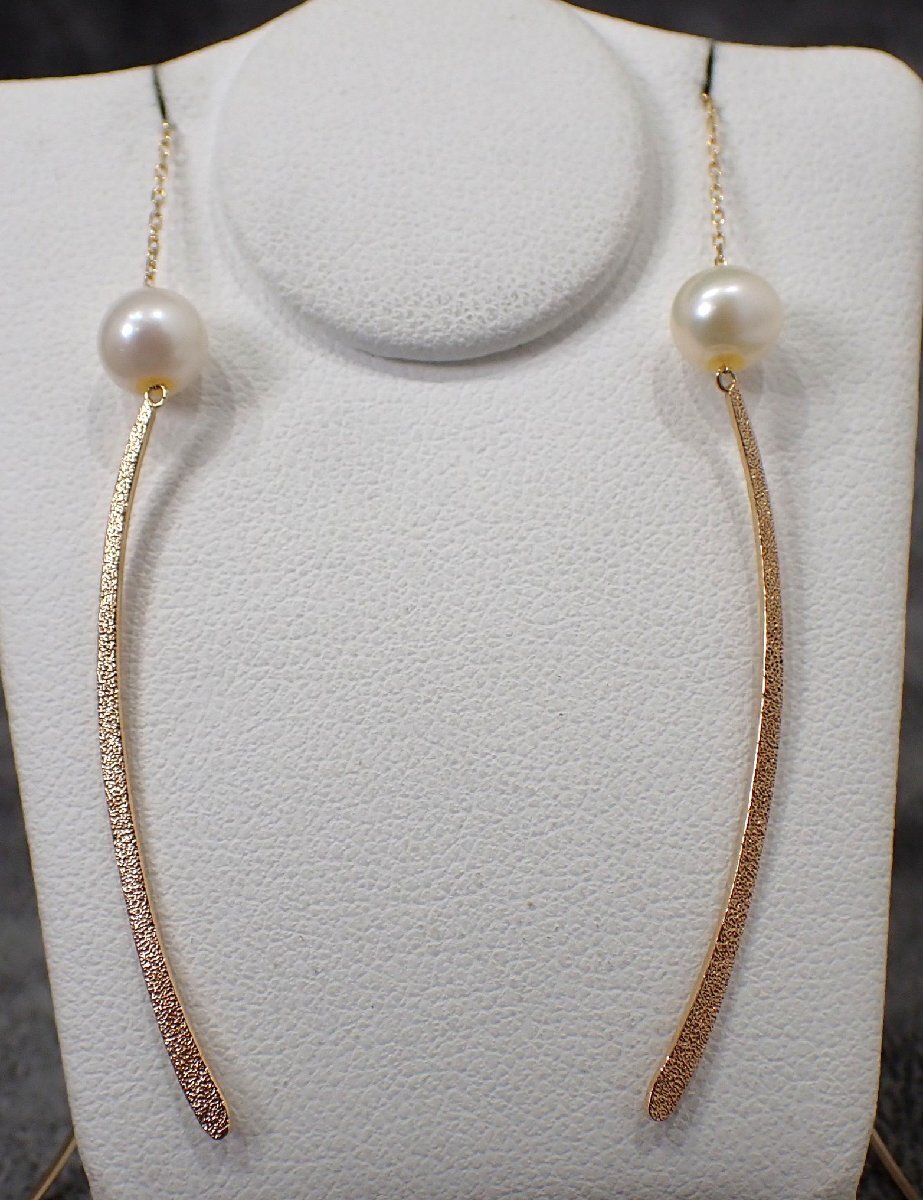 - 定価6万円ほど 美品 agete アガット 10金 K10 本真珠 パール付き ピアス ロング スイング ピアス イヤリング 1.97g 1906